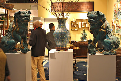The mid-15th century Italian stone creature (crocodile perhaps?) pictured above at L'Antiquaire and The Connoisseur mesmerized me with its jagged teeth even before I saw it was doubly sublime with two heads. The 18th century Piedmontese hand-painted screen behind it is one of the owner Helen Fioratti's favorite things on the stand, and used to be in her own house in Italy. The palette is soft pinks and blues which haven't faded due to it being painted in tempera.